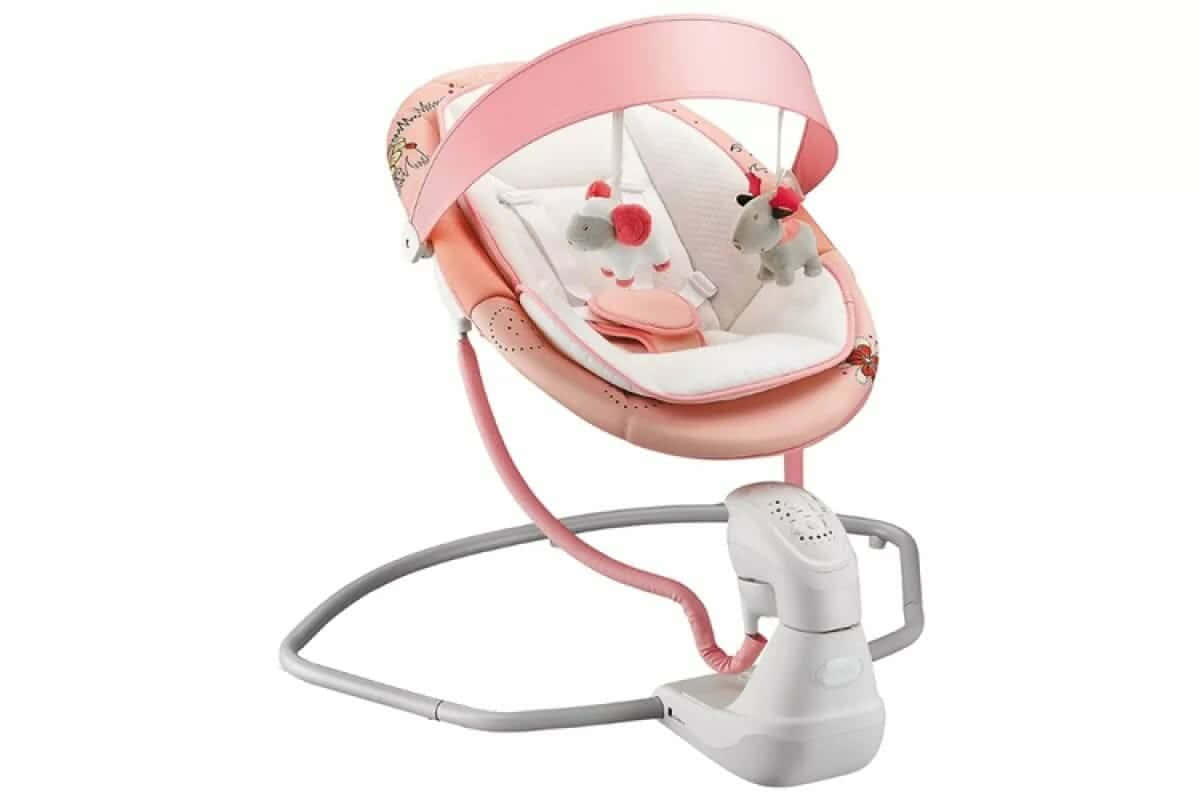 - Для младенцев. Они разработаны для укрепления мышц, вестибулярного аппарата ребенка, а также просто, чтобы дарить приятные эмоции. Преимущественно изделия имеют форму шезлонга с мягким сиденьем. Могут быть обыкновенными и электрическими.