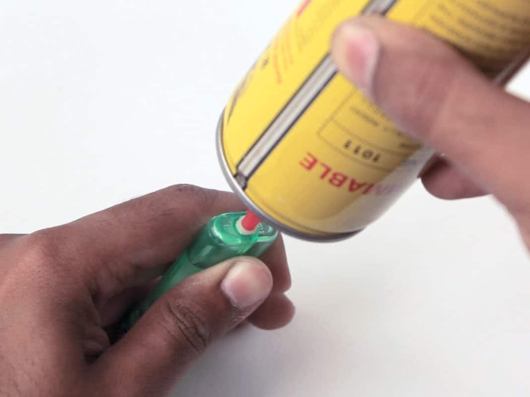 - Приобретите баллончик со сжатым воздухом. Это нужный инструмент для ухода за зажигалкой. Продувка клапанов и очистка от мусора в труднодоступных местах станут намного проще.