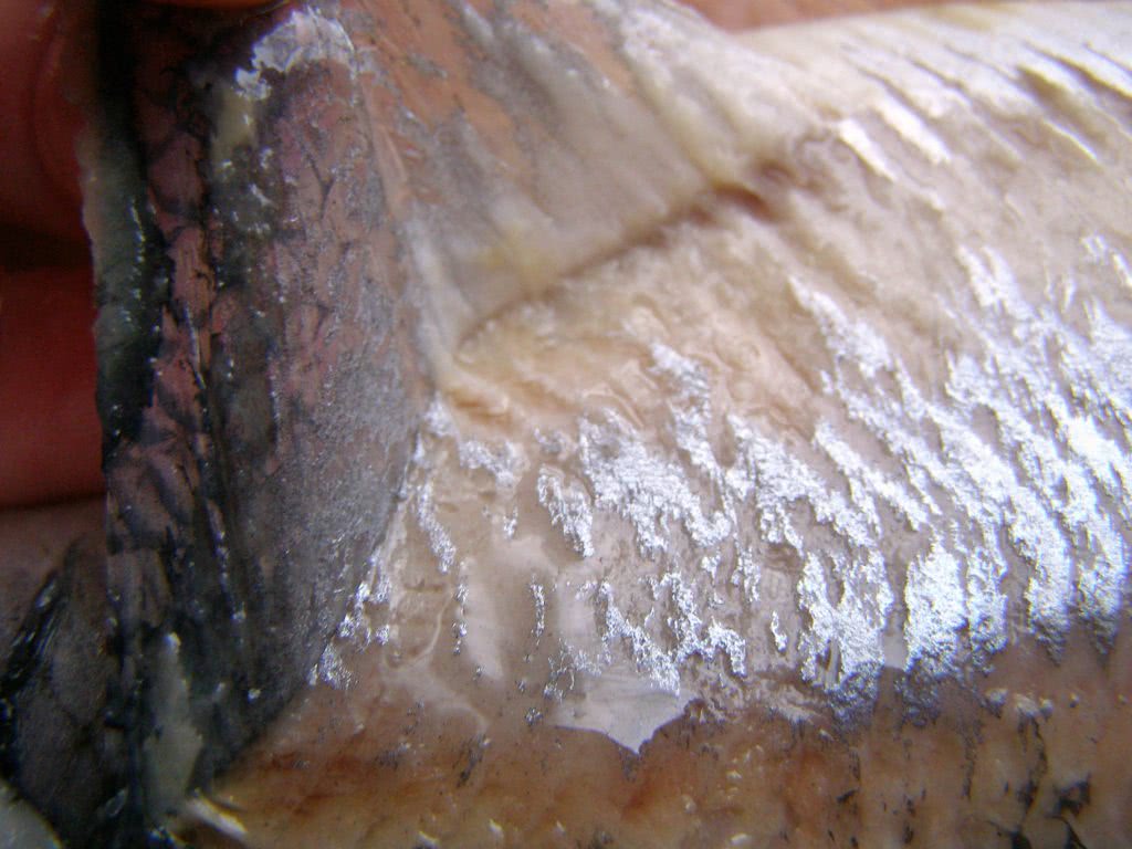 - Если вы купили рыбу целиком в рассоле, вы можете увидеть, цел ли ее покров. Т.к. на нем не должно быть ни дыр, ни пятен, ни надрезов. В противном случае, рыба быстрее портится.