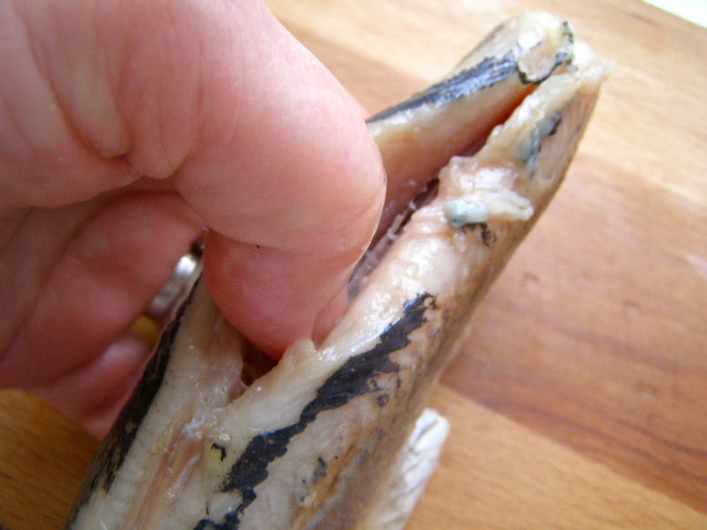 Будьте внимательны и хорошо проверьте, все ли кости найдены и извлечены! Чем аккуратнее у Вас получится отделить первую половинку от второй и вынуть позвоночник – тем меньше костей потом придется выбирать.
