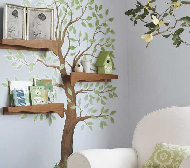 - Материалы: акриловая краска, стена покрашенная, кисти щетиновые, валики