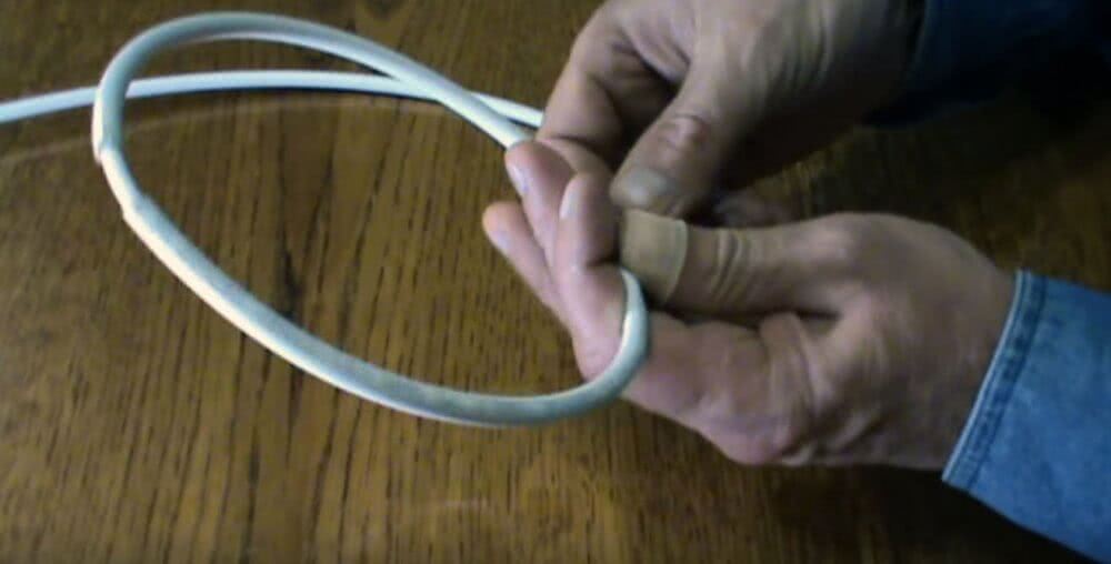 - Подготовьте ещё один кусочек кабеля – 175 см. Из этого куска следует сделать согласующее устройство в форме подковы. Проведите зачистку кабеля с обеих сторон.