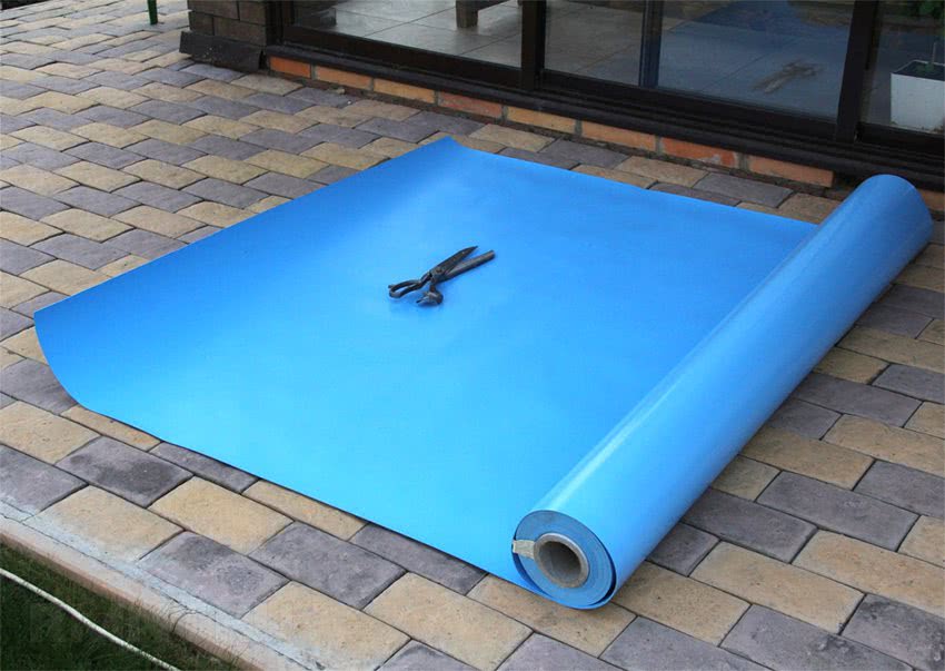 Если вы решите использовать для отделки бассейна ПВХ-плёнку, вам не понадобится выполнять для неё отдельную гидроизоляцию, но если вы опасаетесь, что она не выдержит воздействия воды, можете выполнить в один слой обработку стен бассейна жидким водоотталкивающим раствором. При этом старайтесь приобретать плёнку толщиной не менее 3 мм. Если же вы боитесь, что упадёте в бассейне, имеет смысл приобрести пленку с шероховатой поверхностью.