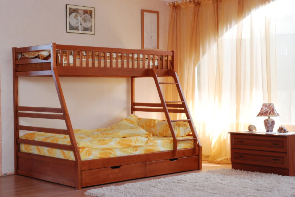 Для детской комнаты существует большое количество способов сделать двухъярусный ансамбль, который может состоять не просто из двух спальных мест.