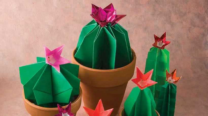 - Кактусы из бумаги. Если ваши кошки едят комнатные цветы на подоконниках, можно скрыть их под сеткой на застекленной лоджии, а подоконники украсить бумажными кактусами. Это более сложный уровень, чем ромашка, здесь нужен объем, который достигается соединением «ребрами» одинаковых фрагментов, выполненных по шаблону.