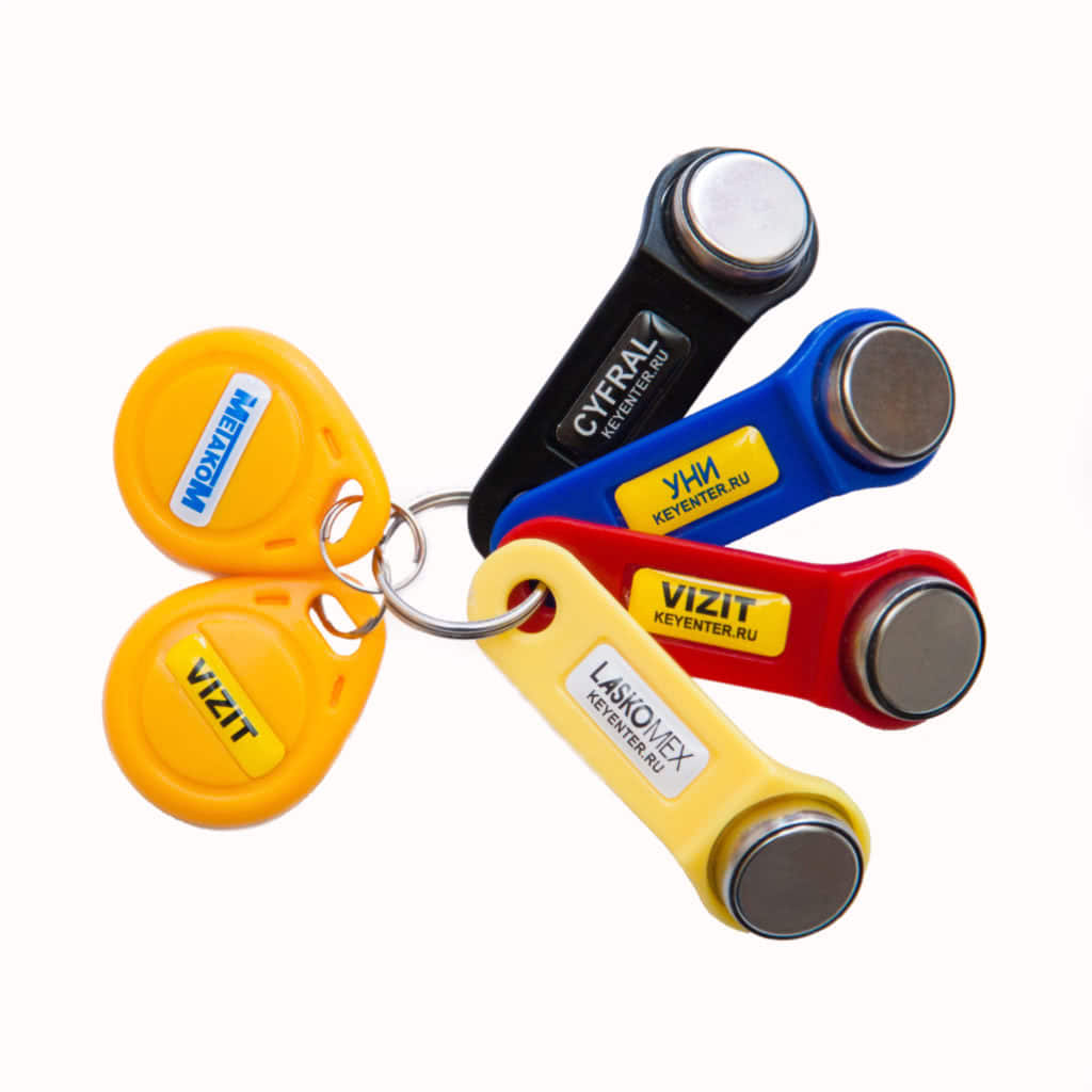 При использовании в домофонных системах, а так же офисных системах контроля доступа наибольшим спросом пользуется именно электронные ключи в виде брелока, т.к. его удобно носить на общей связке ключей. Наиболее качественные и практичные ключи по нашему опыту являются брелоки фирмы Vizit (Визит).