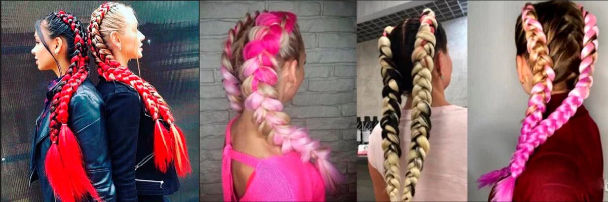 Сочетание косичек прямой челкой подходит вытянутым, ромбовидным и треугольным овалам