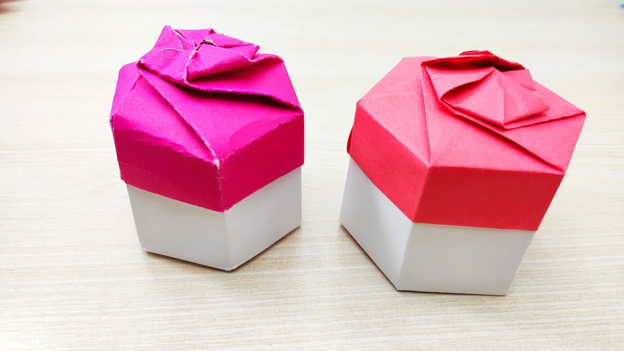 - Коробка в технике оригами. Чаще всего она имеет вид куба или параллелепипеда. Основным ее преимуществом является отсутствие необходимости разрезать и склеивать материалы.