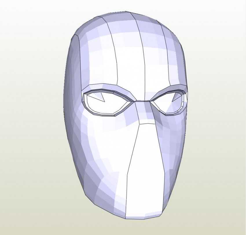 Из картона и бумаги нужно сделать два одинаковых шаблона маски, аккуратно их вырезать и соединить с помощью клея. Дать высохнуть, вырезать отверстия для глаз