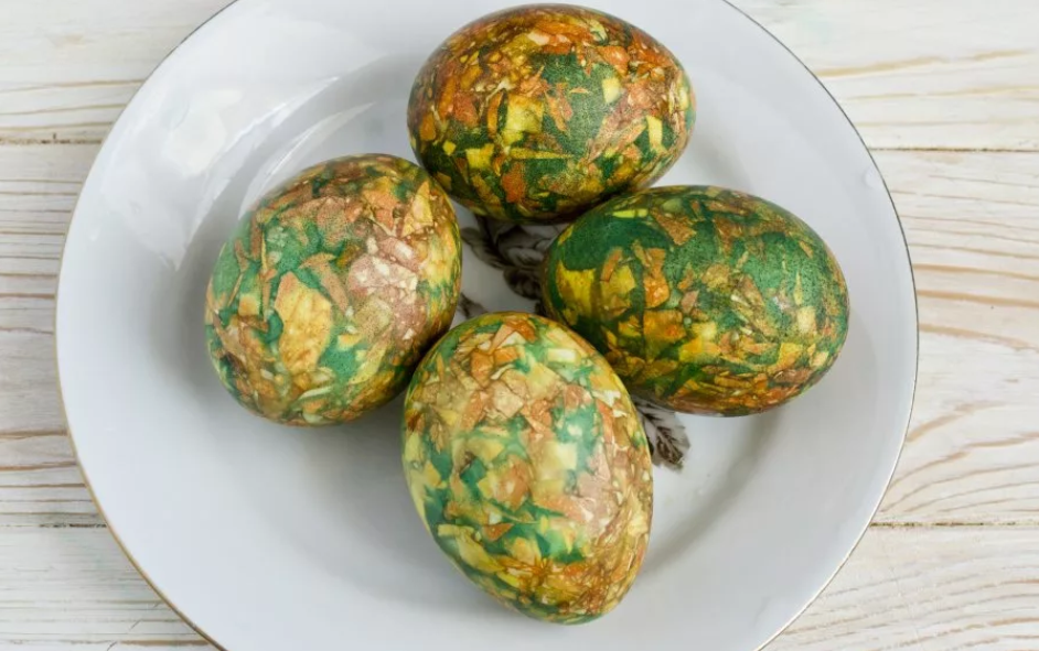 Мраморные яйца на Пасху с зеленкой и луковой шелухой своими руками