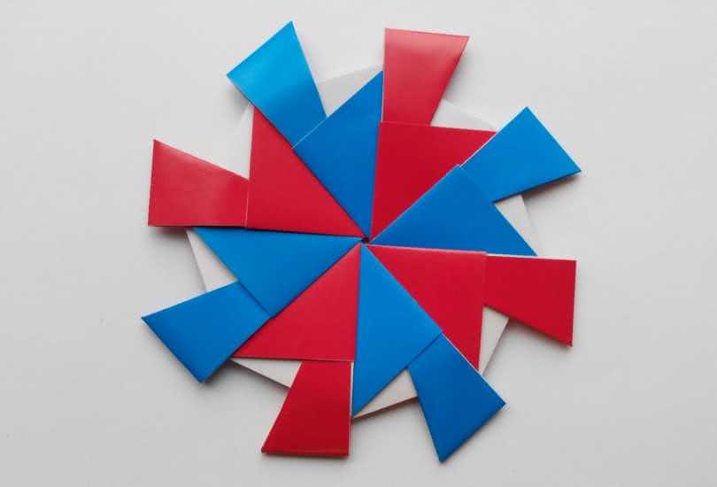У оригами есть и еще одна разновидность, которую называют техникой модульного оригами. Для этого понадобятся ножницы, так как поделка будет состоять из нескольких треугольников. Чтобы их сделать, необходимо для начала нарезать бумагу на одинаковые квадраты. По особой схеме все складывается в треугольники, которые легко соединять между собой.