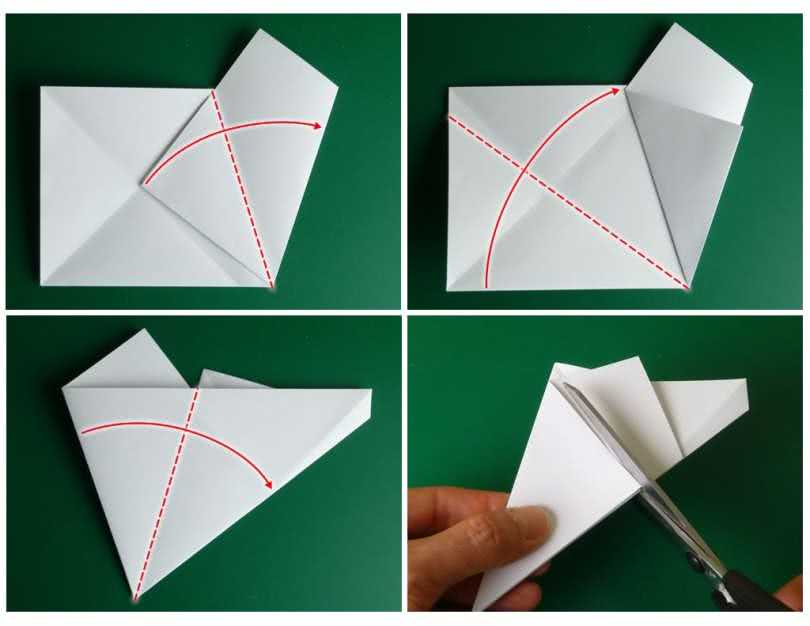 Используя соответствующие инструменты, делайте неполные надрезы. Эти действия выполняются от середины к внешнему и внутреннему углам. Это сделано, чтобы облегчить складывание и придать объем нашему силуэту.