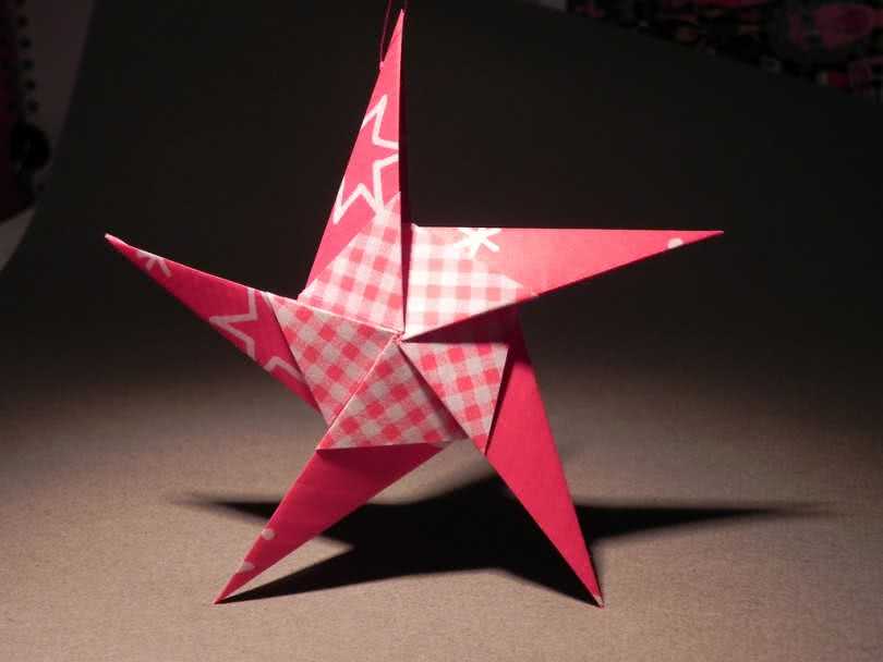 Объёмная звезда своими руками из бумаги или георгиевской ленточки станет прекрасным украшением для открытки к 23 февраля или 9 мая. А «Вифлеемская звезда» в технике оригами по схемам и шаблонам может служить яркой и интересной ёлочной игрушкой.