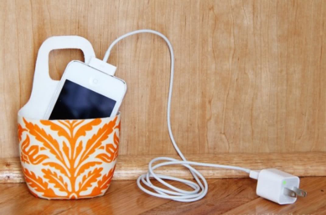 Пластиковая бутылочка может может стать держателем во время зарядки телефона. Вид подставки получается разным — всё зависит от выбранного контейнера. Возьмите любые небольшие ёмкости от любых средств: