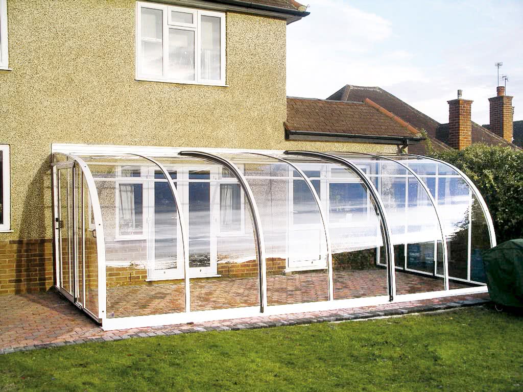 Поликарбонат – относительно новый материал на строительном рынке, который отличается высоким уровнем теплоизоляции. Листы из поликарбоната хорошо гнутся – можно «задать» им любую форму. Этот материал может использоваться не только для оборудования летней веранды – если обеспечить помещение обогревательными приборами, то в зимнее время можно будет оборудовать в нем оранжерею.