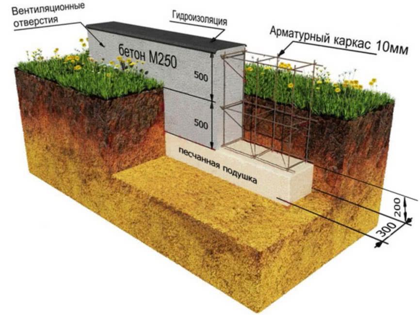 Образец схемы устройства ленточного фундамента