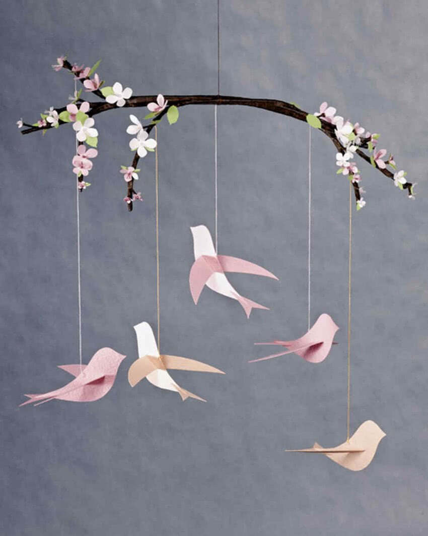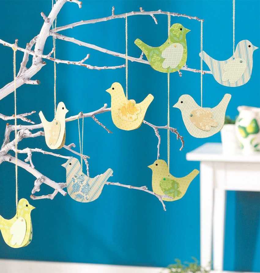 Бумажные птицы можно вешать на елку или украсить детскую комнату. Если сделать несколько различных птиц и подвесить на разной высоте к кругу, получиться очень красивая подвеска.