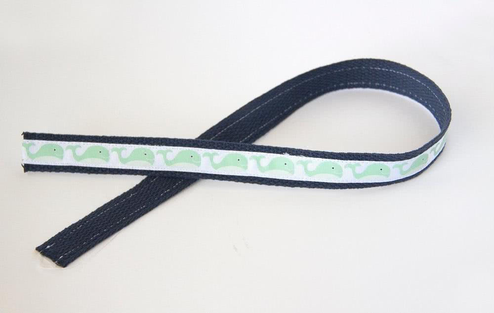 Столько ременной ленты вам понадобится. Казалось бы, атласной или жаккардовой ленты, которую вы выбрали для декора, нужно отрезать столько же. Но не все так просто. Так как застежка у нас — 2 полукольца, то, когда ремешок пройдет через них, будет видна его изнаночная сторона. Поэтому понадобится дополнительный отрезок в 15-20 см, чтобы закрыть изнанку и сохранить эстетический вид ремешка.
