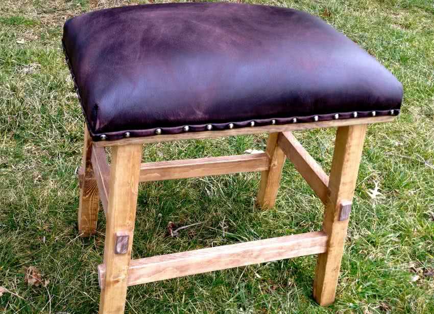 В классическом варианте сиденье изготавливается жёстким без дополнительных облицовочных материалов. Но при изготовлении табуретки своими руками никто не запретит сделать сиденье мягким, применив различного вида обивку. Из наиболее практичных материалов применяется кожа, дерматин, полотно.