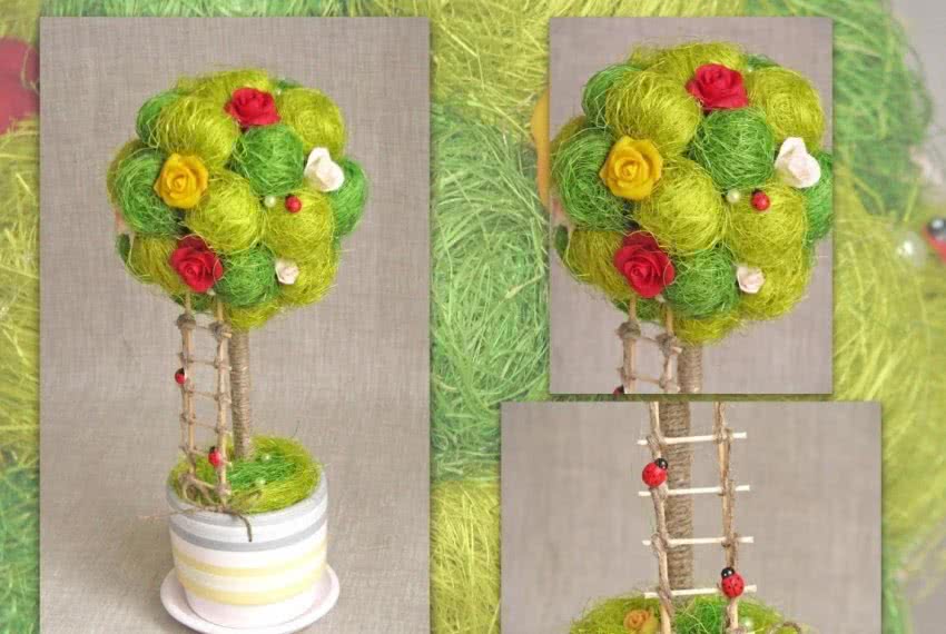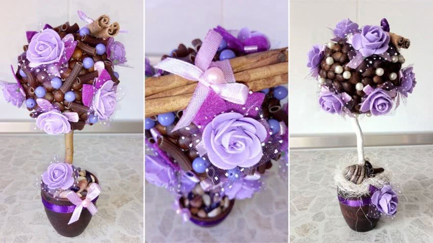 Ниже представлены идеи оформления топиария искусственными цветами, которые вы сможете реализовать с помощью нашего мастер-класса.
