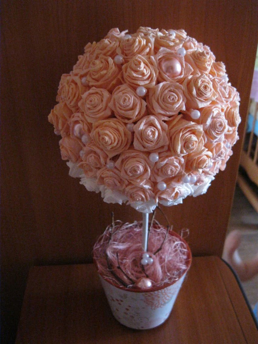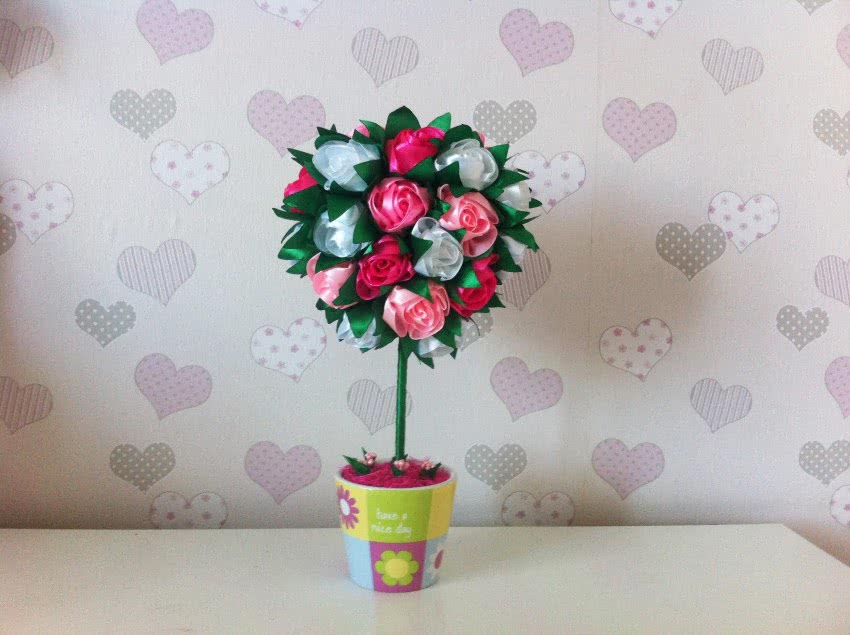 Топиарий из искусственных цветов может стать постоянным украшением обеденного стола, шкафа-витрины, журнального столика, каминной полки. При чем в большинстве случаев лучше делать сразу два одинаковых деревца, чтобы создать ощущение симметрии в интерьере. А еще топиарий из искусственных цветов – отличная идея для подарка или украшения свадьбы.