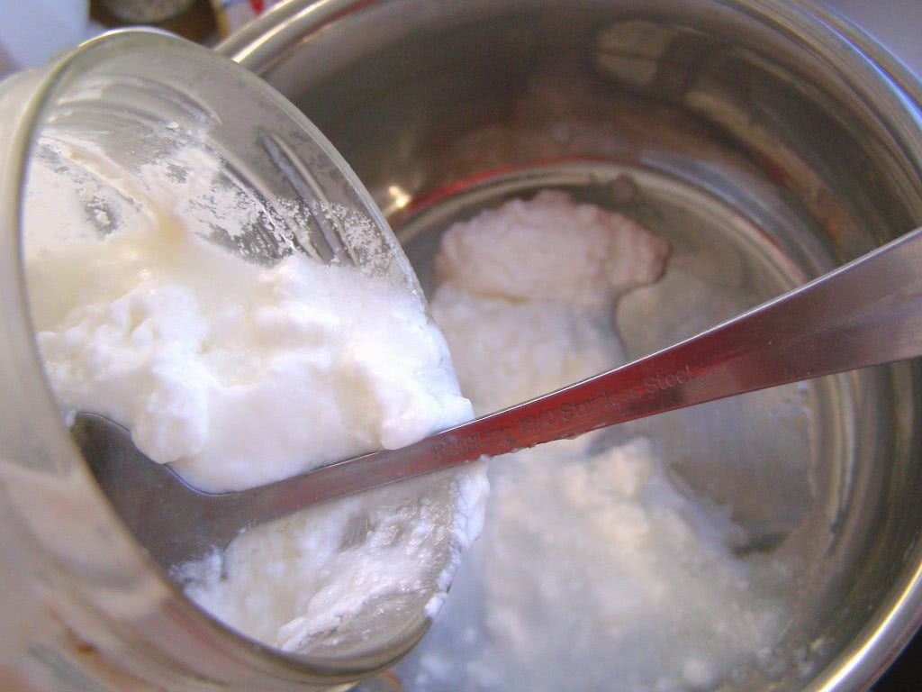 - готовим выбранное сырье. На 1 л теплого (либо комнатной температуры) молока понадобится стакан кислого молочного напитка (кефира, простокваши, йогурта) или 2-3- столовые ложки сметаны. Не имея кисломолочного продукта, многие используют кусочек ржаного хлеба: в нем масса дрожжевых бактерий, обеспечивающих необходимое сквашивание молочных компонентов;