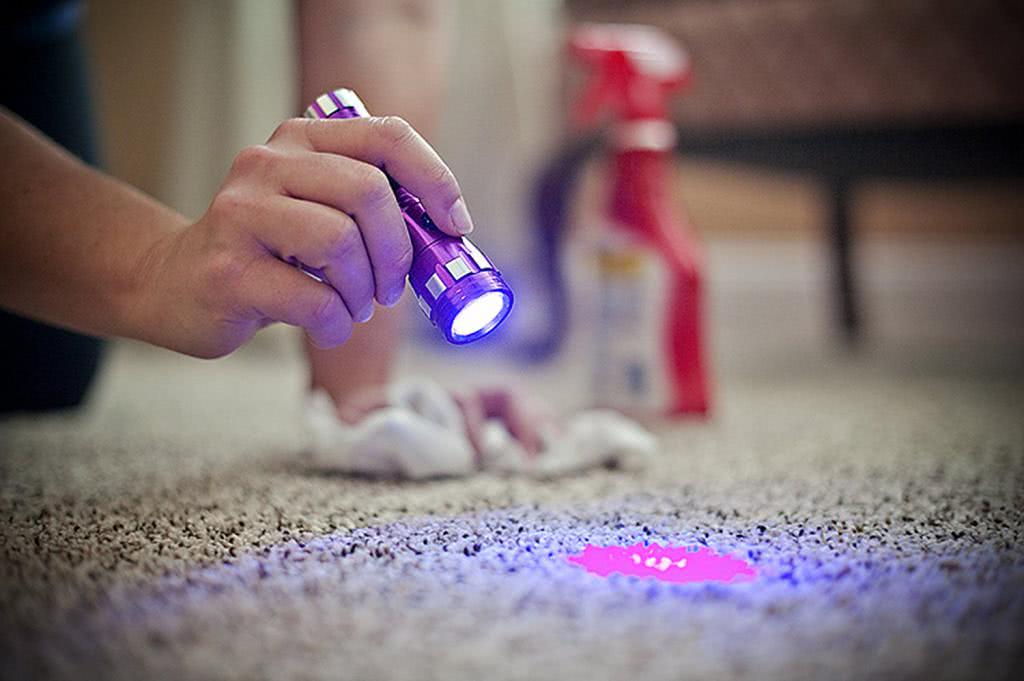 - Биологические вещества (слюна, пот, сперма) становятся легко заметны в свете УФ-фонаря. Это применяют криминалисты при осмотре мест преступления.