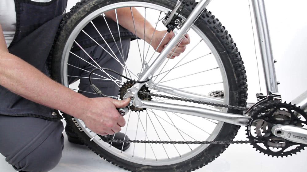Важно проследить за цепью, чтобы не искривить задний переключатель скоростей.