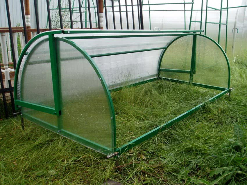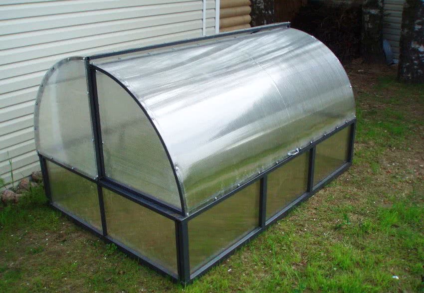 В качестве материала для изготовления каркаса используют профильные металлические или полые полиэтиленовые трубы, в роли укрывного материала — поликарбонат или пленку. В случае износа или механического повреждения покрытия, легко можно заменить его полностью или частично.