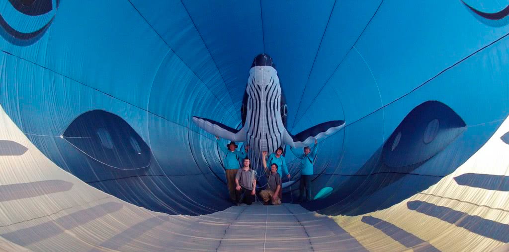 Эти воздушные змеи надуваются как правило спереди, с помощью воздухозаборников. Которые тщательно замаскированы под внешний вид животного.