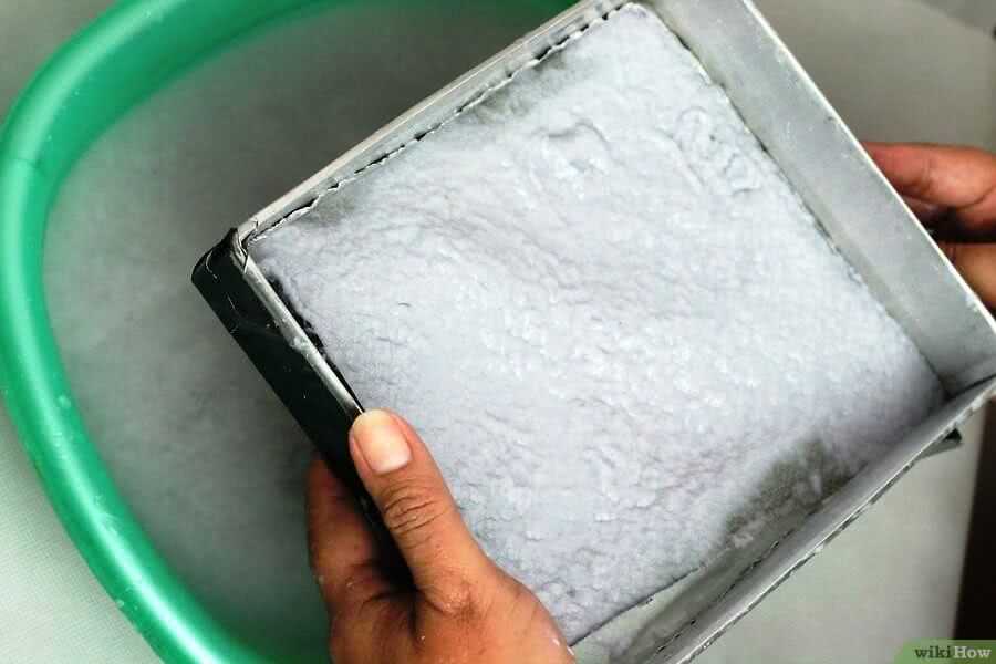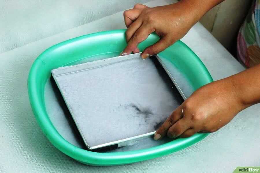 Далее налейте полученную кашицу в чашку и заполните ее теплой водой. Размешайте содержимое ванны до равномерного распределения всей массы макулатуры в воде.