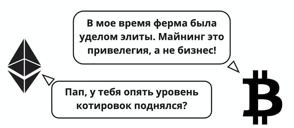 - Закупка дорогостоящего оборудования (в основном, фермы используют видеокарты и ASIC);