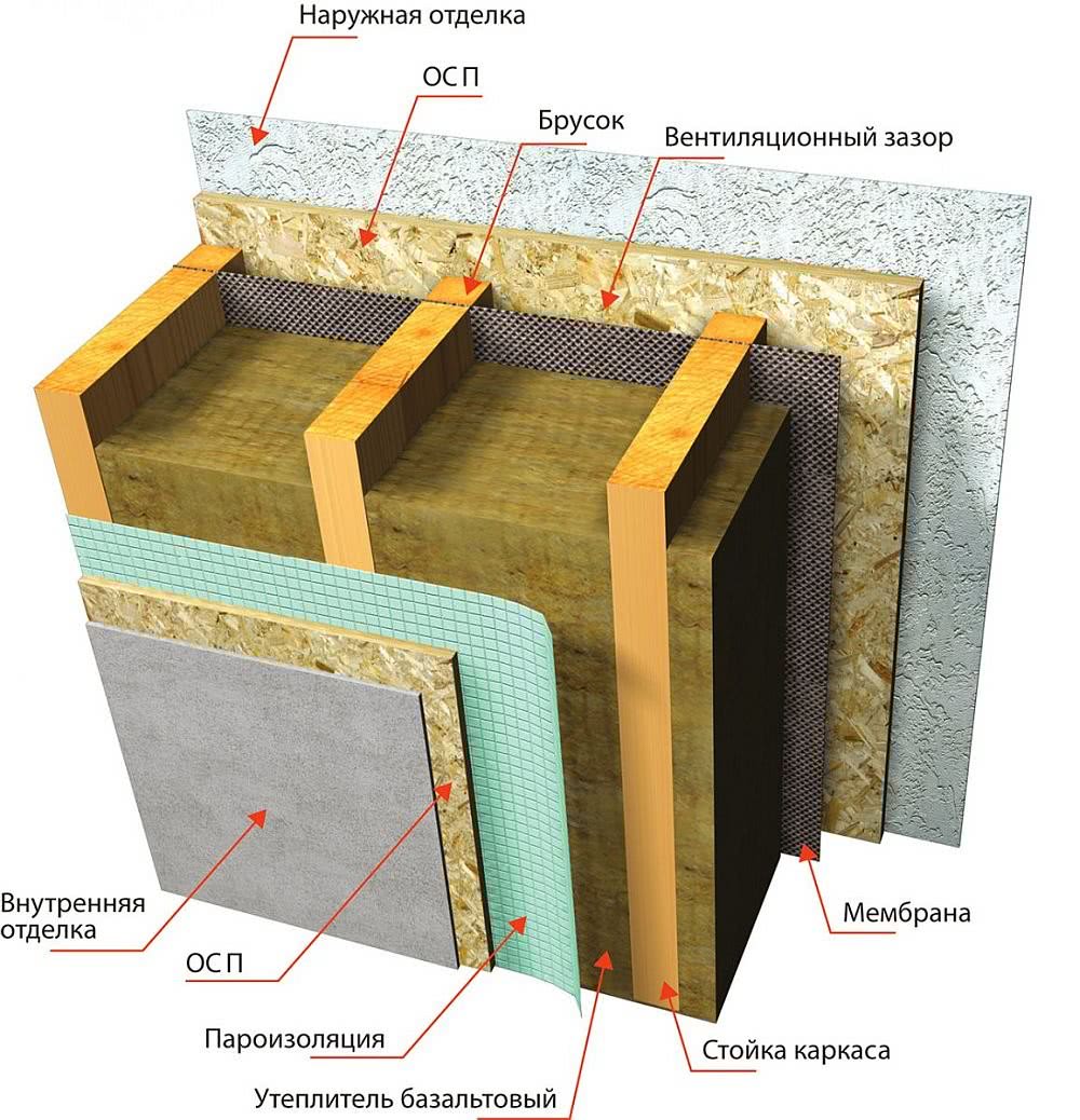 В результате стеновой щит – это многослойная конструкция, «пирог» которой выглядит следующим образом (от улицы к помещению):