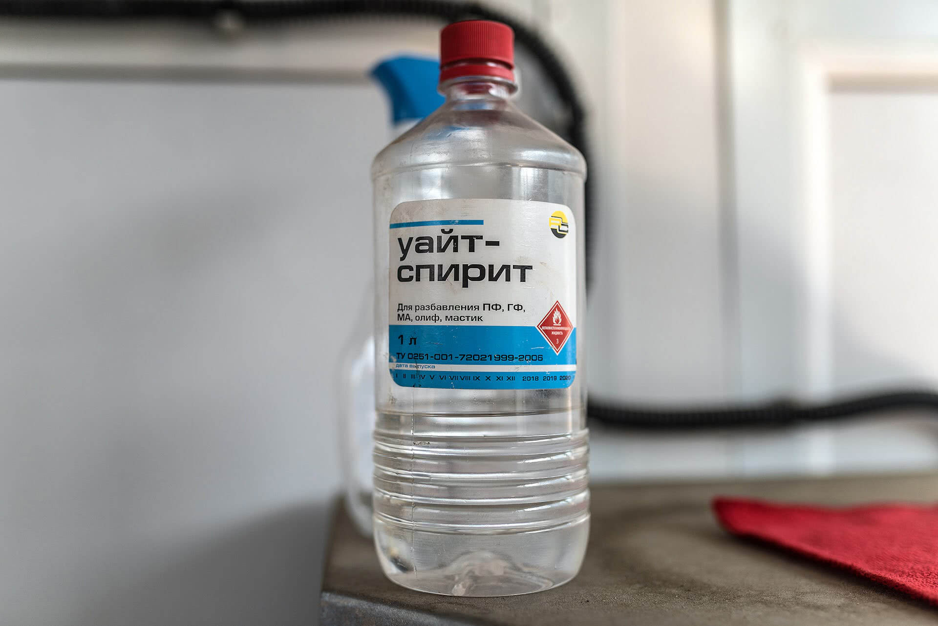 - Составом, применяемым в быту : Уайт-спиритом, сольвентом, керосином, бензином. Нужно помнить, что все эти жидкости имеют запахи, необходимо при их использовании проветривать помещение.
