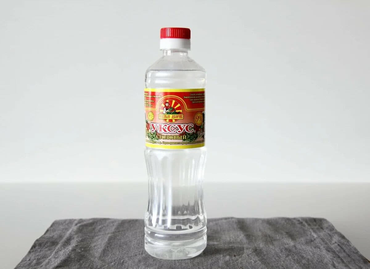 - Уксусом . Подойдет любой, который найдется под рукой. Это может быть столовый, винный или яблочный уксус.