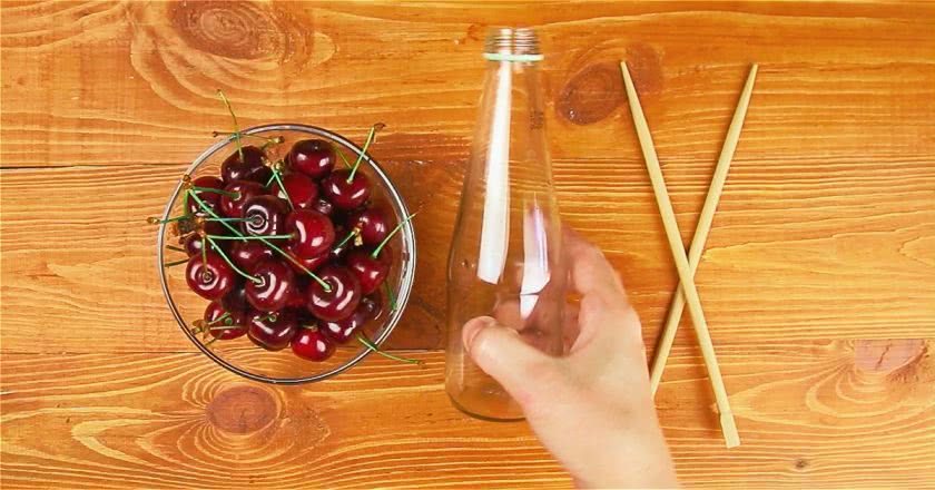 - Бутылка и палочка. Вы уже знаете, как удалить косточки из вишнис помощью китайской палочки, мы не будем останавливаться на этой технологии.