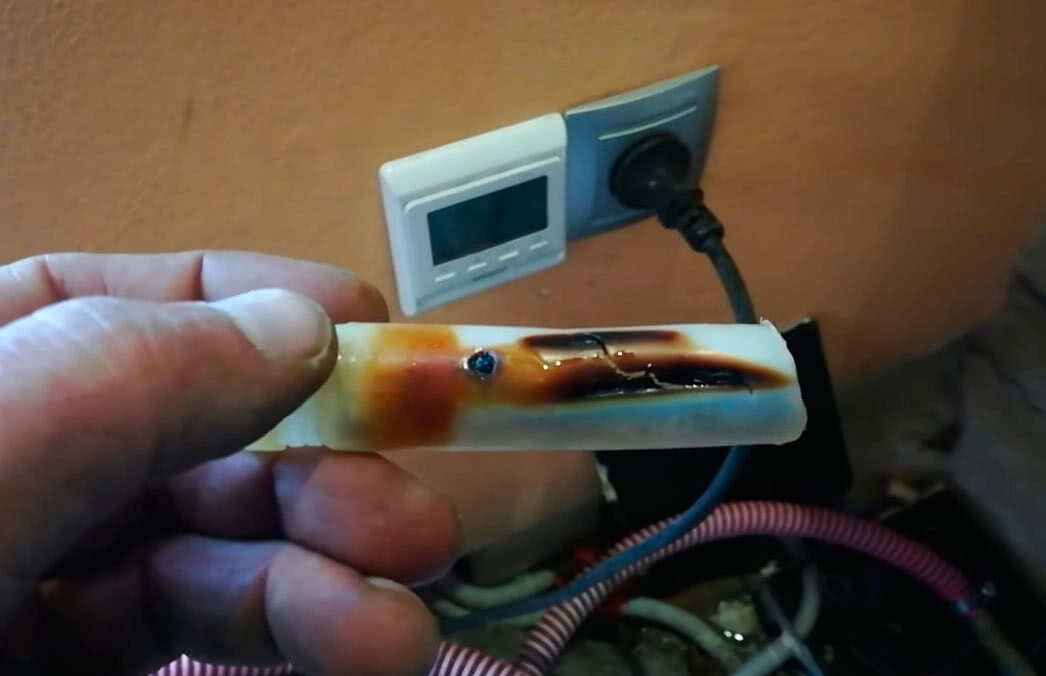 Вот так выглядит труба, прожженная сгоревшим кабелем. Нагнетаемая жидкость попросту будет уходить через нее.