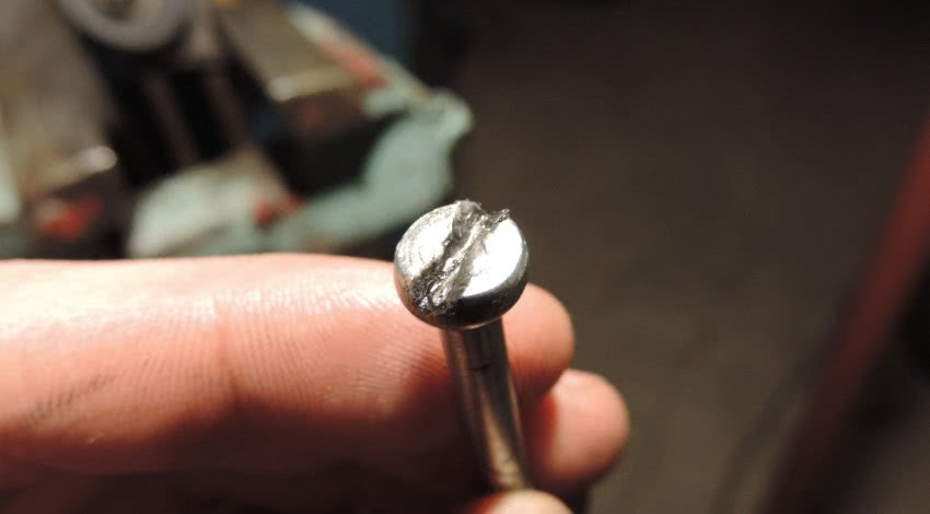 Подходящий выбор тогда, когда сорвало шляпку или если дефект обнаружился в самом начале резьбы, и под рукой нет отвертки. Посмотрите, наконечник приспособления для нанесения разметки острый и поэтому замечательно подходит для деформации среза. Несколько легких ударов, и вот поверхность уже перестала быть ровной, за нее уже можно зацепиться плоскогубцами и выдернуть застрявшее тело.