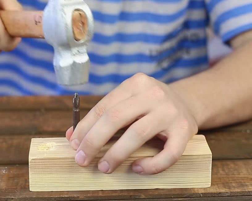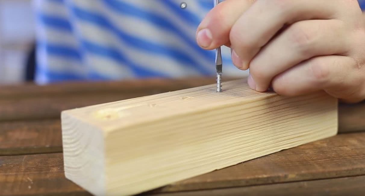 - Вбиваем захват в деталь обхватив сам саморез или шуруп