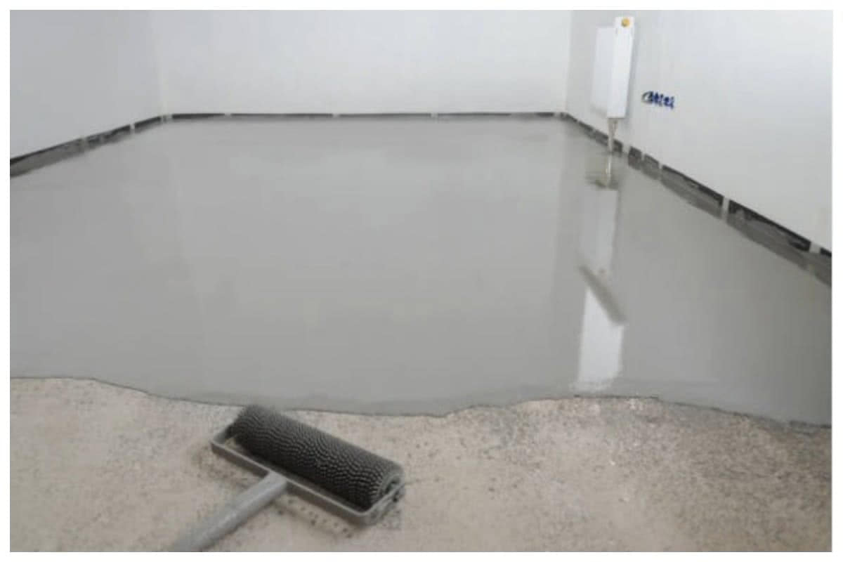 Готовую смесь выливают на пол и сразу же раскатывают ее специальным валиком. Можно также использовать обычный или зубчатый широкий шпатель. Поскольку такой раствор высыхает достаточно быстро, прерывать процесс разравнивания или затягивать его нельзя. Если рабочая площадь слишком большая, следует поделить ее на продольные участки и заливать поочередно.
