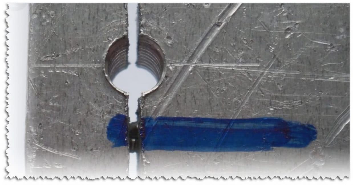 - Удалите оставшиеся части метчика при помощи тонкого шпателя или иного острого инструмента. Продуйте резьбовые отверстия.