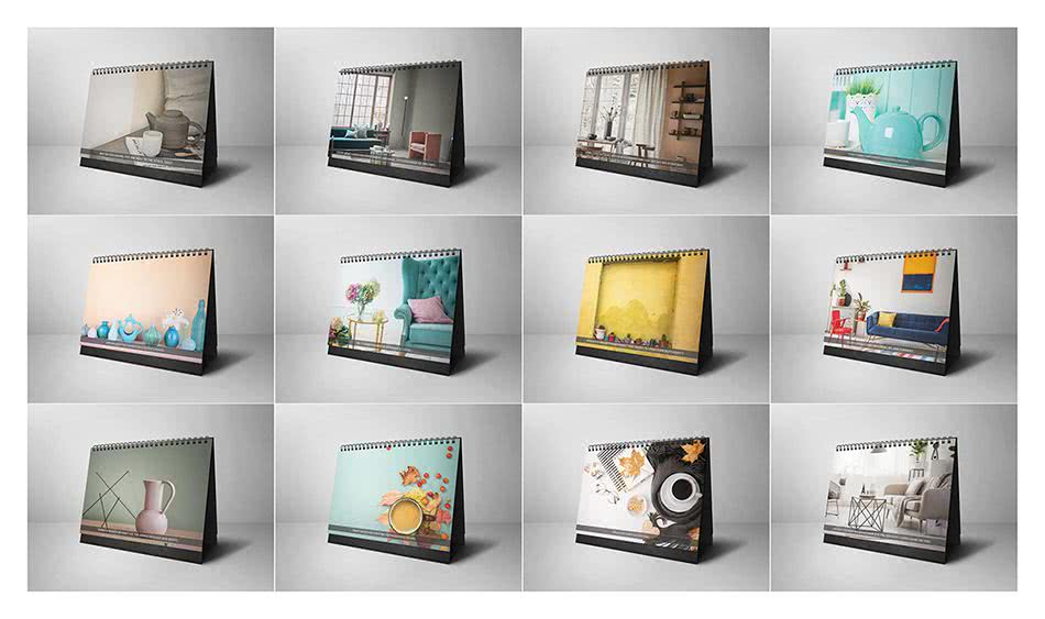 - А здесь вы видите целую палитру ярких и стильных изображений на 12 месяцев. Вы можете найти свои изображения в подобном стиле и использовать их в своем варианте. Несмотря на простоту, серия таких изображений очень оригинально и красиво смотрится в календаре.
