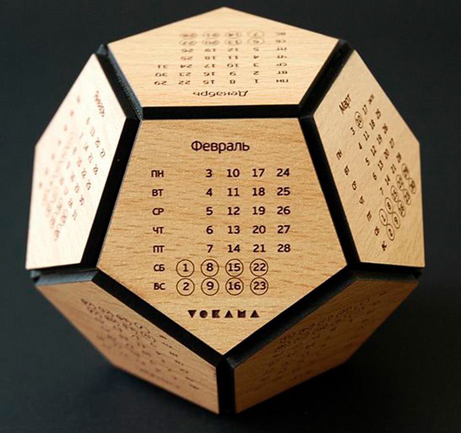 - Оригинальная форма календаря – то, что уже долгое время используется компаниями. Такой многогранник можно сделать из разных материалов и в разных цветовых комбинациях, чтобы собрать стильный настольный аксессуар. Пользуйтесь!