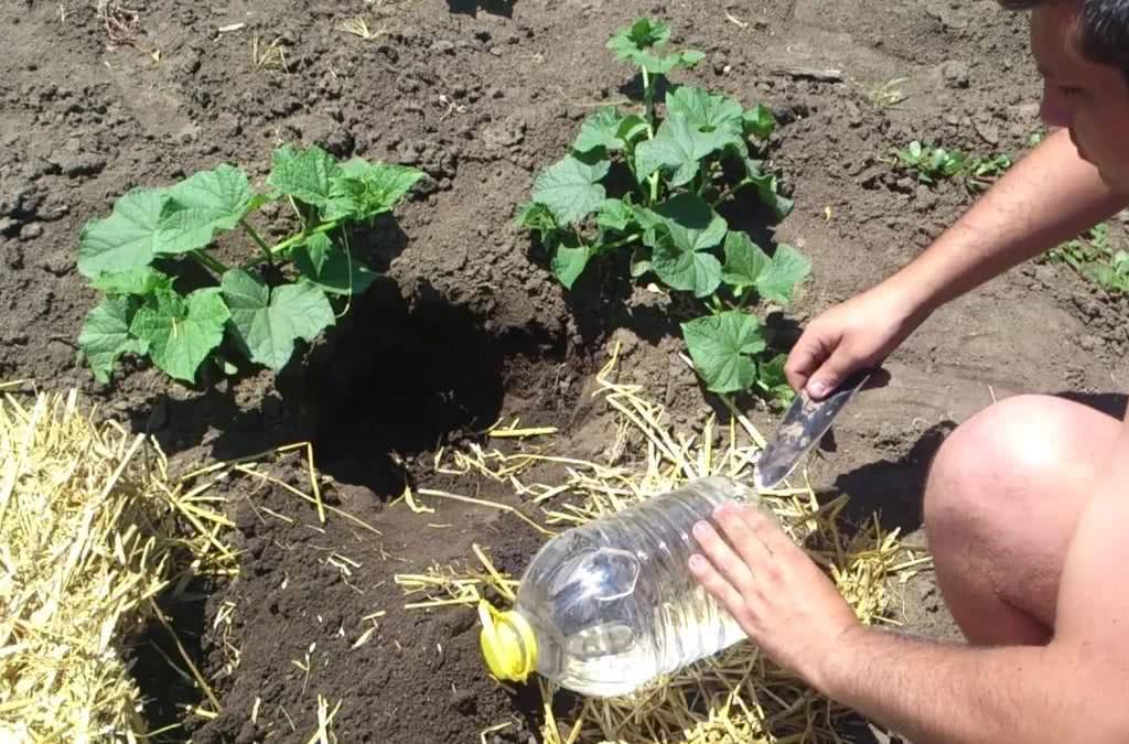 жидкость в бутылках прогревается, что важно для роста огурцов, от холодной воды они испытывают стресс и болеют;