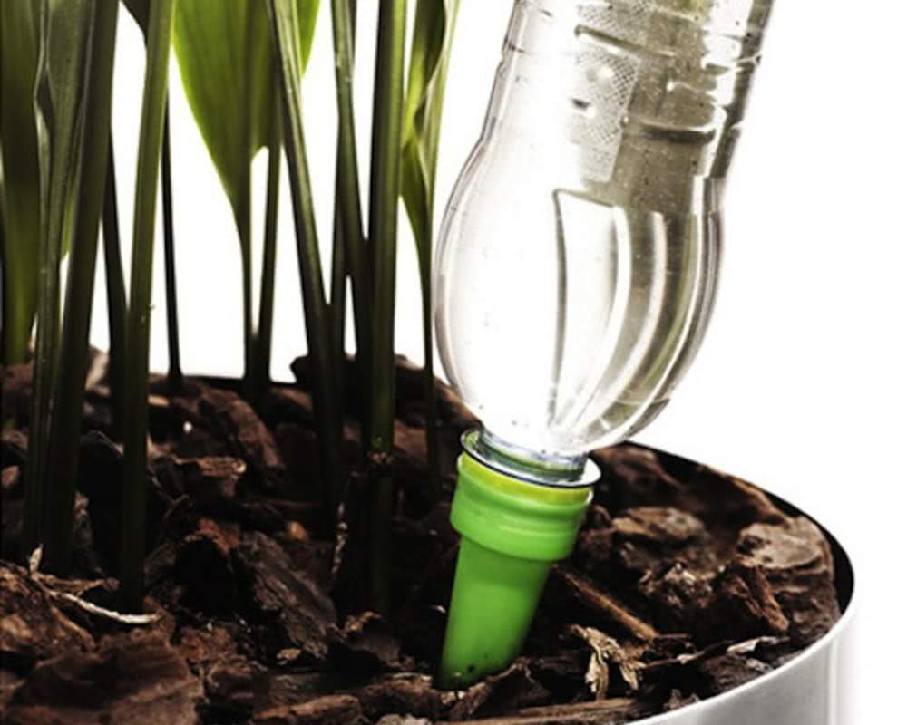 Важно экспериментальным путем узнать диаметр дырочек в крышке пластиковых бутылок, чтобы влага не вытекала слишком быстро или, наоборот, очень медленно.