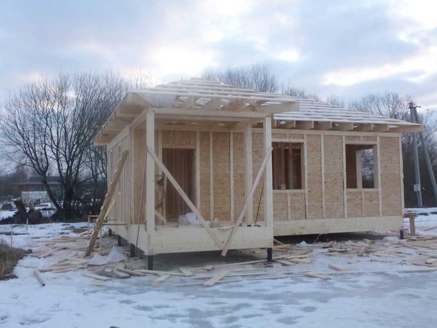 Зимний каркасный дом требует основательного утепления всех ограждающих конструкций. Обычно подобные работы проводят после установки оконных и дверных блоков.