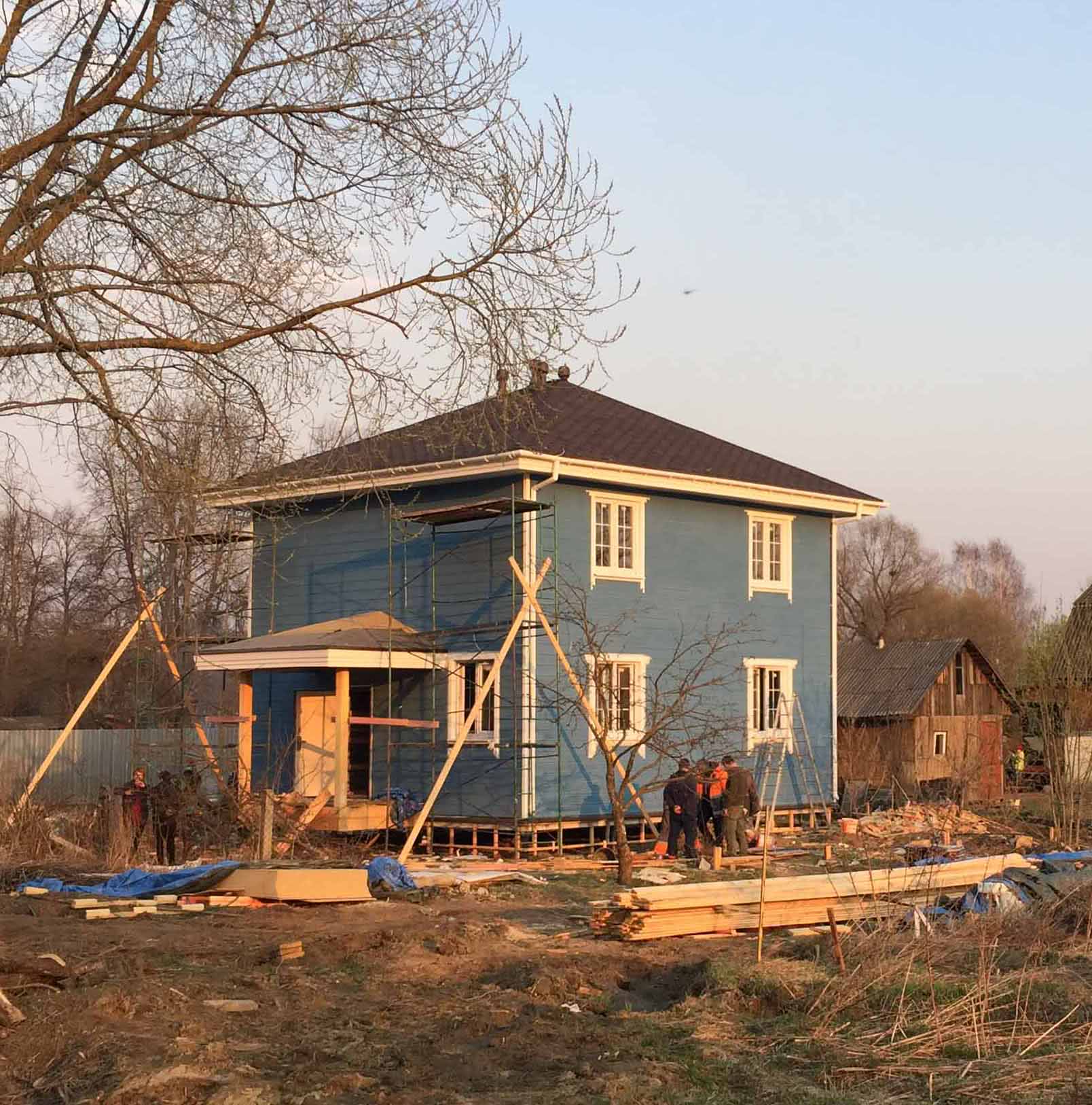 - Домик среднего размера три человека смогут построить за три месяца. На отделочные работы уйдет еще около 1,5-2 месяцев. В работе не понадобится тяжелая строительная техника, отсутствуют мокрые циклы работ.