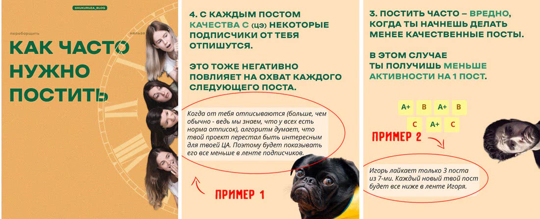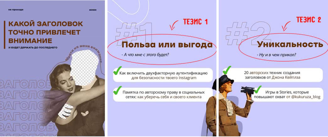 Подписчики просто перестанут обращать внимание на одни и те же призывы в конце каждой карусели — эффективность будет нулевая. Используйте разные интересные CTA