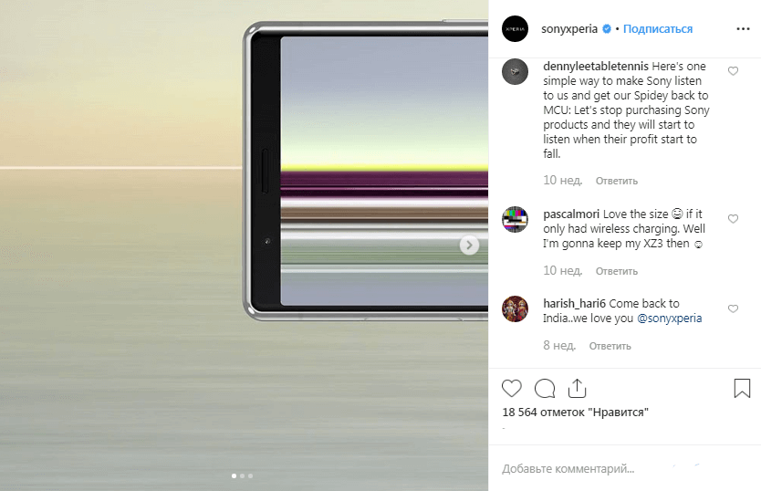 Пример использования поста-карусели есть в профиле @sonyxperia.