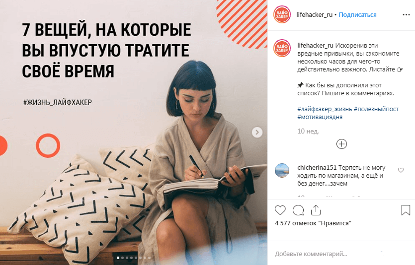 Несмотря на распространённое заблуждение, пользователи Instagram готовы читать длинные публикации. Главное, чтобы они были интересными и легкочитаемыми.